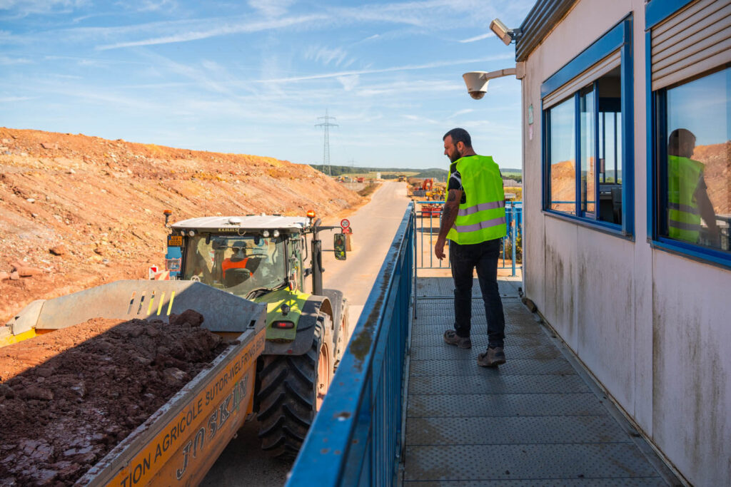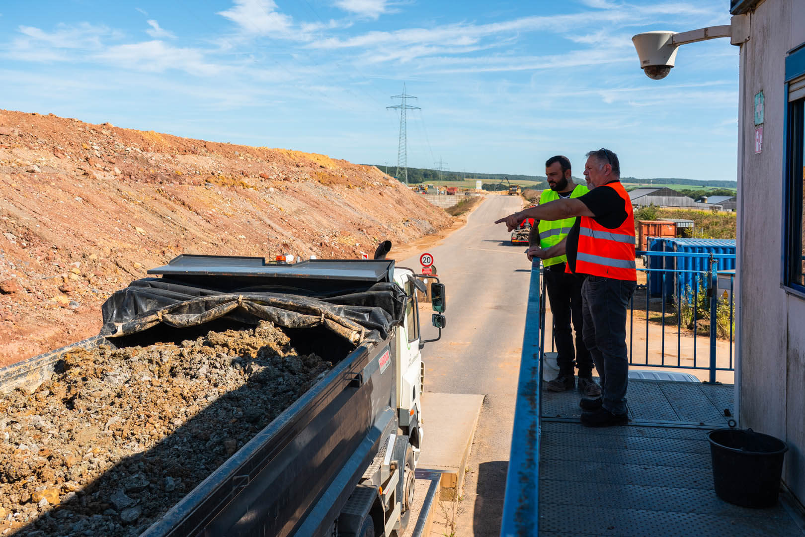Pour garantir la propreté non seulement de l’environnement mais aussi du site lui-même, les camions sont dirigés vers un quai de déchargement. Des engins spéciaux s’occupent de la mise en décharge et limitent ainsi l’étalement des terres sur les voies publiques.